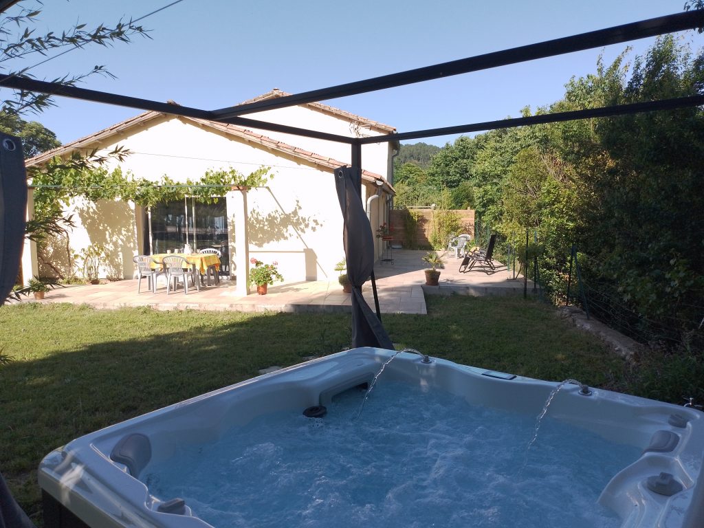 En extérieur vous retrouvez une terrasse, 1 jacuzzi privatif et une espace jardin ombragé, parking à l’intérieur de la propriété à proximité du gîte.