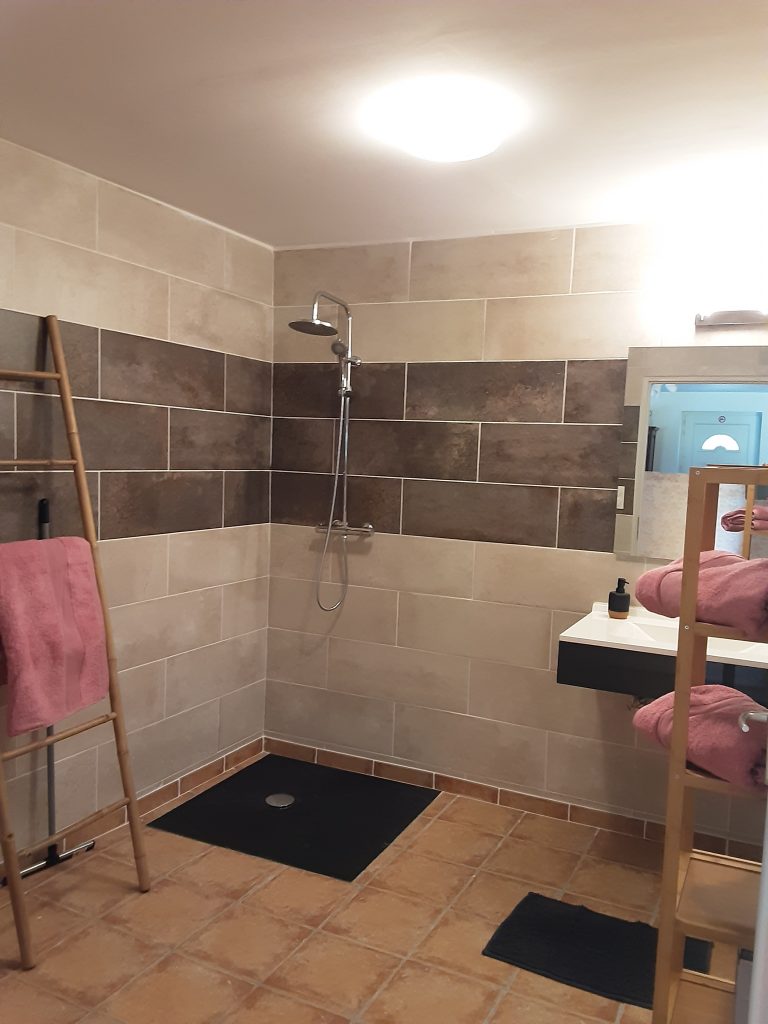 - Salle de Bain avec douche à l’italienne, sèche cheveux